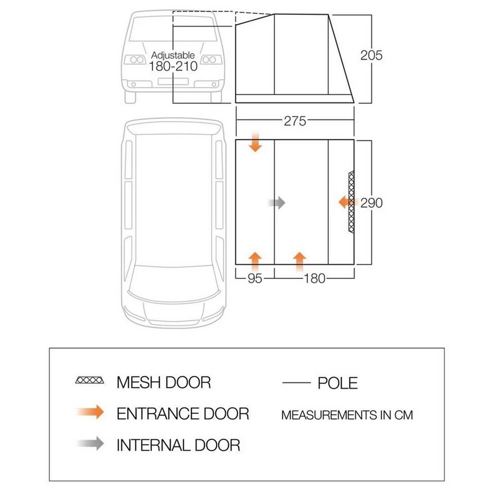 The large front door with mesh panel creates a great living space making this awning the perfect addition to your vehicle on short breaks away.